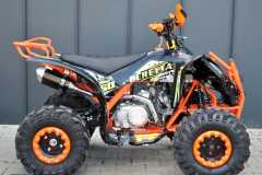 Quad BERETTA TURBO 150 – jest przeznaczony dla młodzieży i dorosłych. Wyposażony jest w najmocniejszy silnik 150cc z chłodnicą oleju, który łączy niezawodność i dobre osiągi. Półautomatyczna skrzynia biegów 3+1 zapewnia komfort podczas jazdy. Model 2021 wyróżnia się mocniejszą ramą bogatym wyposażeniem. Quady BERETTA stale są ulepszane, by sprostać oczekiwaniom naszych klientów. Nigdzie nie znajdziesz lepszego quada z takim wyposażeniem!